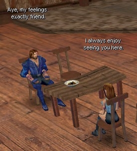 This is a handy performance based script that causes two NPC's to have a nice chat using occasional voiceset sounds. It belongs in the OnHeartbeat event of One NPC. Place another NPC near enough to look like they could be engaged in dialogue, and you are done! You can customize the chat lines to fit your PW or Mod. You can even use it for dungeon ambience; making two creatures speak whatever tongue they know. This works fine alone or equally well if you have the NPC's sit down in the OnSpawn and ConversationEnd events. Hope it helps! (Updated 12-31-05)