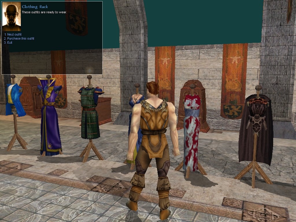 These are the scripts for a simple, self contained clothing rack. Now pre-assembled as the clothrack creature with a local variable for adjusting price mark up. Just add whatever armor or clothing you would like sold to the creature's inventory. Do NOT add items that are not armor/clothing (like boots, bracers, cloaks, etc.) PCs are now warned if the clothing/armor has usage restrictions (Alignment, Class, Race) before purchase.