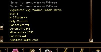 This wand simply allows you to target a player and have the following information displayed in the server window : Name, Sex, Race. Level Class Deity Current XP XP To Next Level Gold Alignment To use, just import .erf. It will import one script and one item (the wand). The wand can be found in Items/Custom/Special/Custom 1 (The QUaervarr information wand - rename at your peril!) and the script relies on your OnActivateItem module script running a script with the same name as the tag of the item (tag based scripting). Kiss goodbye to those days of calling female dwarves 'him' because you couldn't see past the beard!