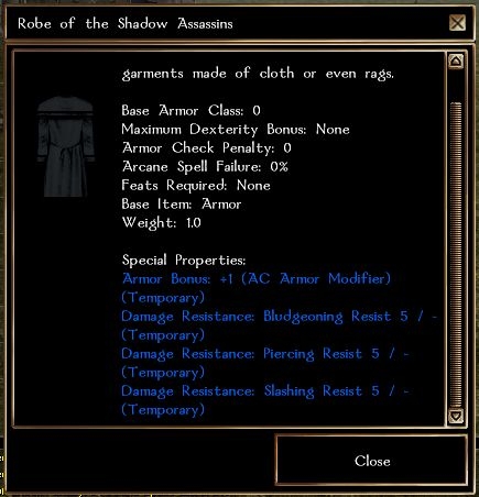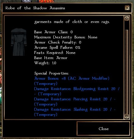 | Hm...something's not working when I import these into my CEP 2.2 mod. The standalone mod works fine. Tagged scripts fire fine on the apropriate events. I've tested that thoroughlly. And I even copied the include, SA script and SA items from the working mod to mine to test. The script fires because I can see it removing the wings off my RDD, but it never adds the bonuses to the set items.