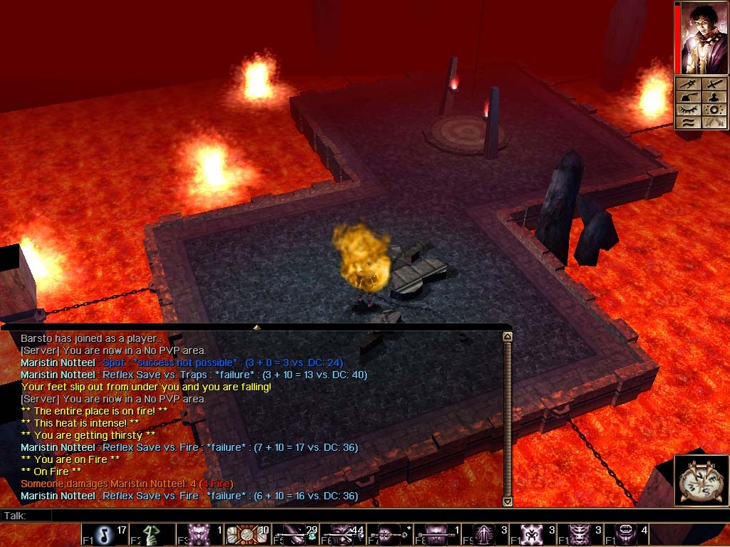 The great thing about this script set is that they can be used together in one area. For demonstration, please note that I have both the Fire system and the Heat system running in the "Fiery Pit of Doom." This means that PCs dehydrate due to the intense heat and can catch on fire too . . . basically you can stack this as you need.
