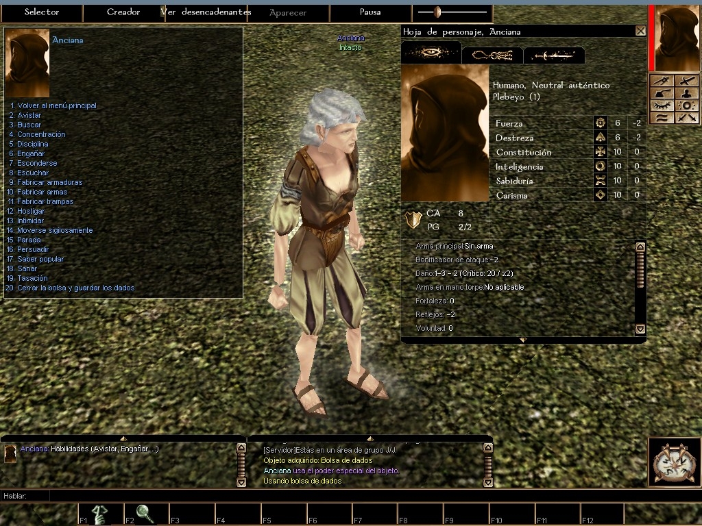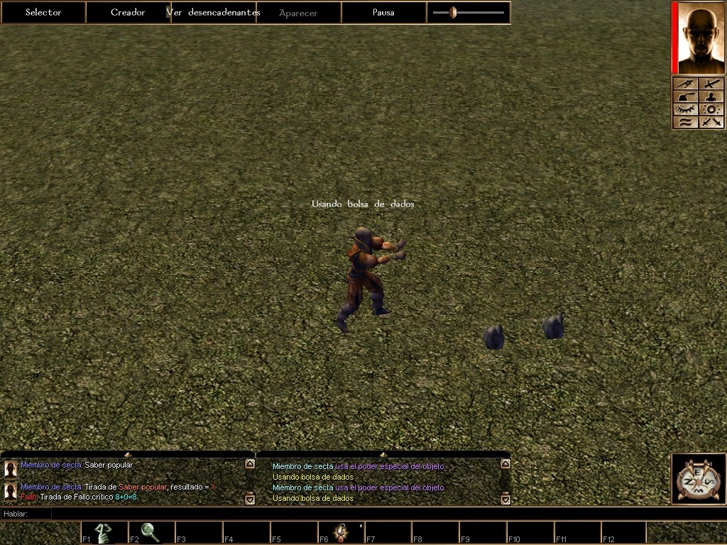 Tiene un grave error esta bolsa de dados, y es que no se ha definido bien el oPC (se ha usado un simple speakstring :S) y en un modo multijugador se suele rallar mucho si los jugadores activan las bolsas a la vez.