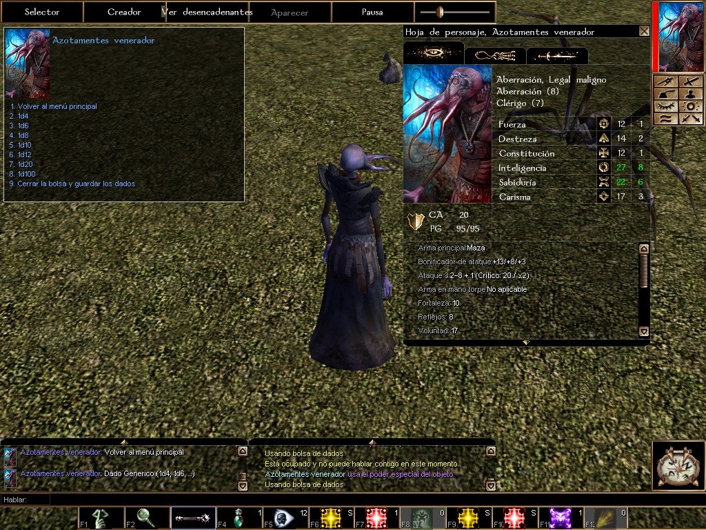 Test module and code included. You only need to include the erf in your module and give the item "Bolsa de dados" (tagged as pe_d20bolsadados) to your players. The item can be found in Objets/Customize/Tutorial/Bolsa de dados