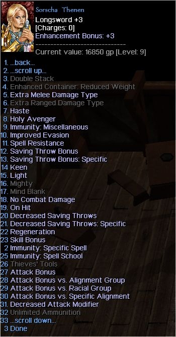Item properties tables are read from 2DA supporting almost all properties available in the toolset. Full support for vanilla NWN and fairly smooth transition to custom content. CEP should work without any changes to code.
