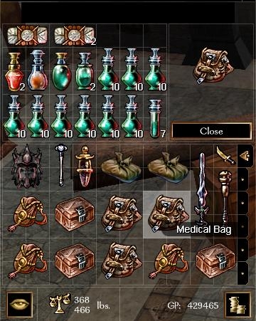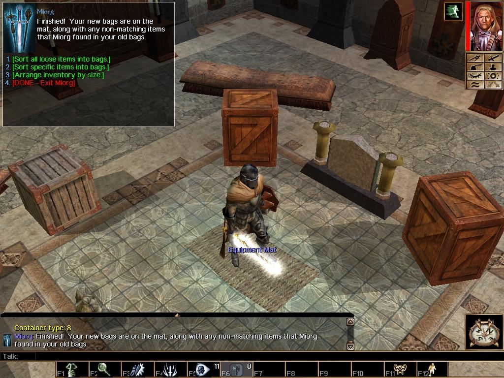 If you have a running character that you like to play in multiple modules, you can also import him or her into the Miorg demo module, organize your inventory, and export back out again. This is a one-shot deal, since you won't be able to use the widget in a module that doesn't have the Miorg scripts, but it will clean things up for you, and you can keep all the Miorg bags with no problem. _________________________ NWN1 Scripts: Miorg Inventory Organizer Switch-Based Secret Doors Suite