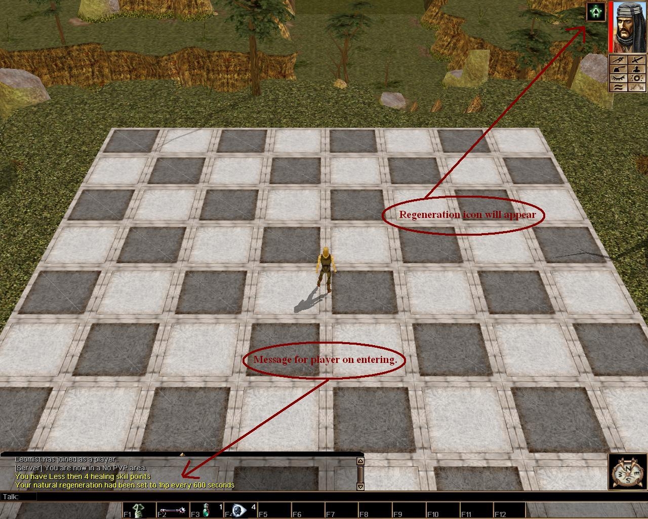 This is the complete module Demo version of the Natural healing script you must be damaged for the script to kick in. so i have placed a minor holy trap in the top left hand of the chessboard, from there you can damage your self.