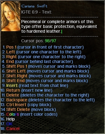 The NWN In Game Text Editor is dialog-based somewhat simple and hopefully easy to use text editor with the following features: