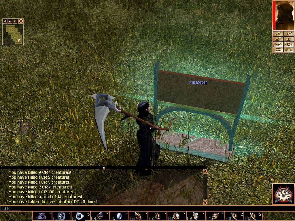 A demo module is included to demonstrate basic functionality and basic installation. I have also included an erf with a placeable that reports the kill stats to PCs and an erf for basic demonstrations of how to save to and load info from the database that stores the PC kill stats. The erf called �vg_killstats_met� contains the placeable.