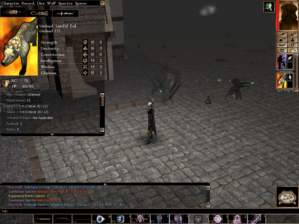 I haven't tested it out yet but you deserve a high score for the effort. I've always loved having minions & this breathes new life to nwn. The ehthereal effect on non standard undead types is a nice touch as well. It remeinds me of the original baldurs gate when there weren't limits to summoning undead. I miss clogging the halls with skeletons while I launch spells over their heads. At any rate well done! =P _________________________
