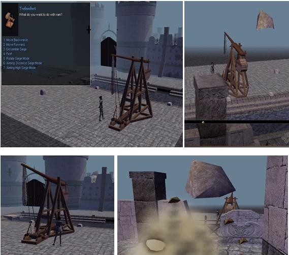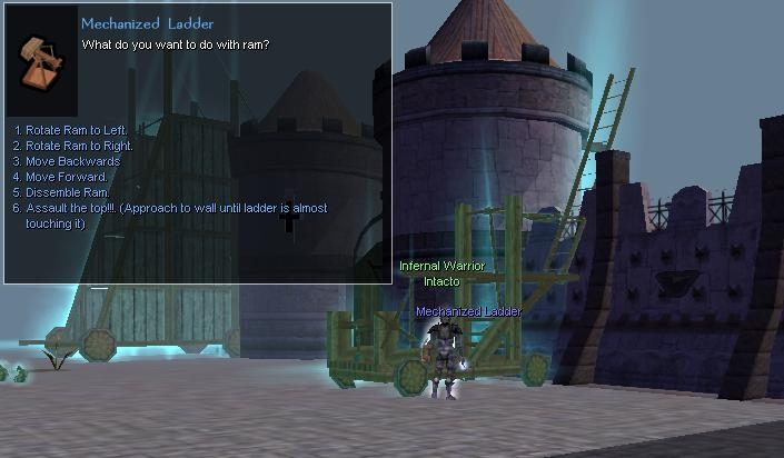 Tendras que ensamblar las diferentes masquinas de asedio usando un barril que podras cargar y transportar. Para construir el artefacto debes tener INTELIGENCIA (configurable) y para moverlos FUERZA (Configurable).