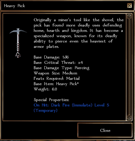 3) Flame weapon (and similar spells) can be cast on all creatures that have a single creature weapon, regardless of which slot it is in. (Bug fix -- BioWare's version missed one of the three creature weapon slots.)
