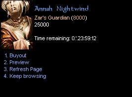 Just a comment to answer the lats question. I have included both a demo mod and an erf with a readme (I made it as complete as I could). It tells you exactly what you need to do to get it working. I tried to make it as import-friendly as possible. In v1.1 I might add a header script for customizable options (like auction length) that you can do in one place instead of sifting through my comments, but that's about as user-friendly as this system will ever be.