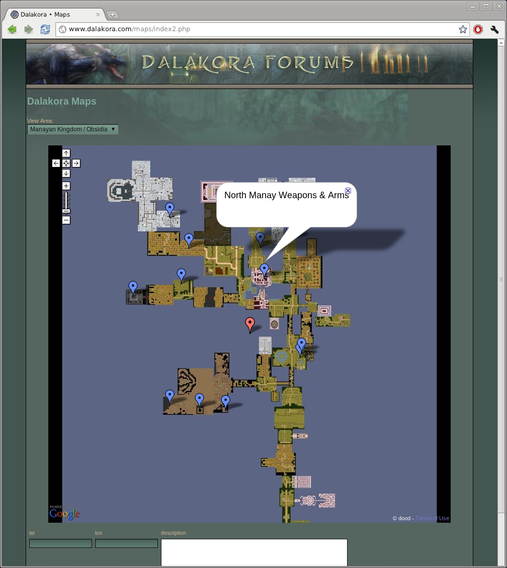 - just drag the orange marker to the spot. it will populate the lat / lon fields at the bottom. type in a description and hit submit.