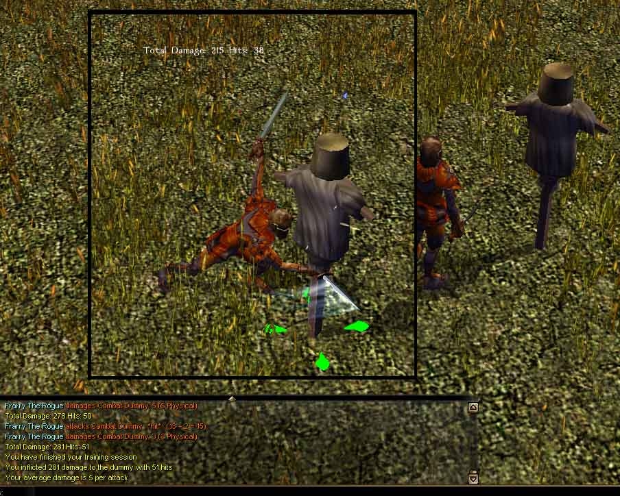 Knat also because there are say 2 - 3 hits in a round the dummy gets re-created that amount of times at the completion of the training session so I'm getting 20+ combat dummys all on top of each other after awhile.City of Melnibone - PW