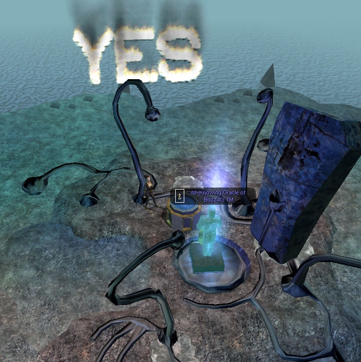 Are you confused? Filled with unanswered questions? The Bazzul's Magic Ltd. All-knowing oracle can help*! With its exclusive Exalted Wisdom and patented 'Hand of God' firey display technology, this oracle can finally and definitively answer just about any question**! * Note: For entertainment purposes only. Bazzul's Magic Ltd. cannot be held responsible if you act on the oracle's advice. Bazzul's Magic Ltd. makes no actual claim about the helpfulness or non-helpfulness of this product. ** Restrictions: All questions must be in yes/no format. Update: for those of you who want want to write in letters of fire, or do a whole host of other spiffy things, check out the preview release of our World Shaper tool, now available for download in the Script section here at the vault.