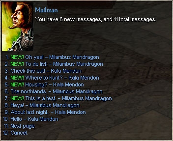 This is a Mail System for Persistent Worlds. Users can setup Mailboxes, then receive Mail messages from other users. Messages are stored in the NWN database system.