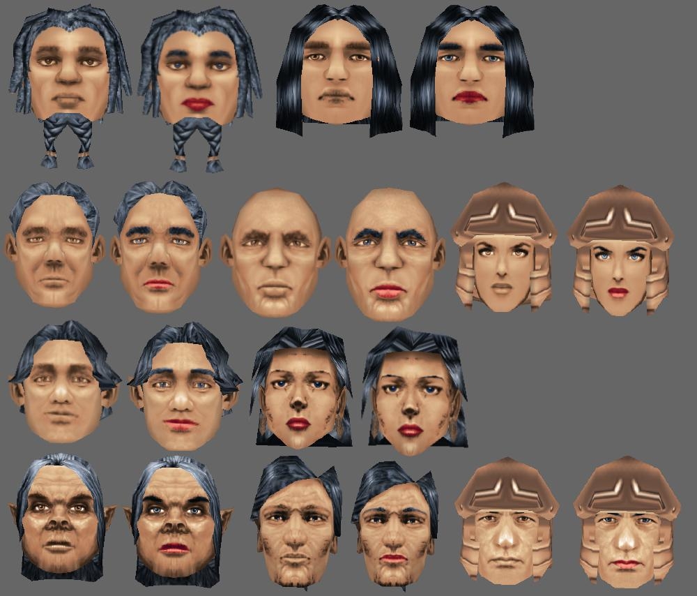 These three heads were requested by our Oriental Mythos builder. So the changes to the female head are "non-standard" versus our other head plts. Also, there are two different sources for the content. The original work was done by Nathraiben with the non-freckled versions coming from the Moonshadow hak.
