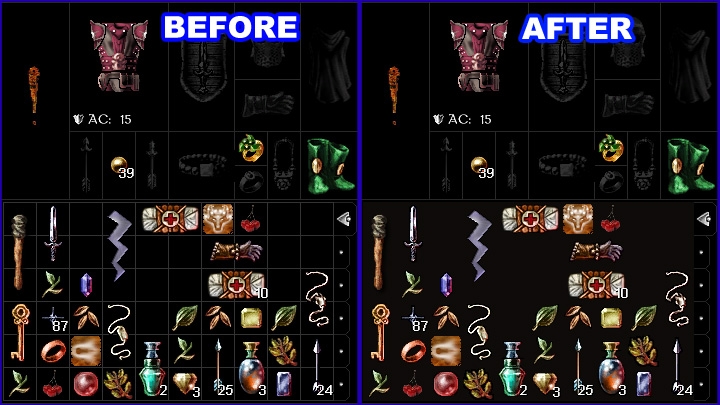 This mod removes tile borders from inventory screen and makes it dark brown in color.