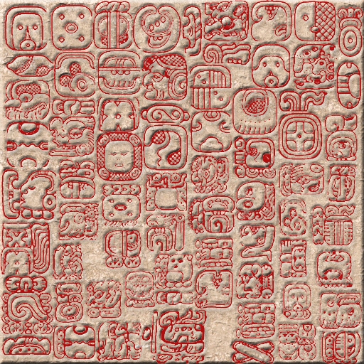 This is a series of Mayan hieroglyphs on different materials. The sizes of the five textures are all 512x512 in .tga format. I'm anticipating these to be used in a number of upcoming models, but feel free to use them for your own creations (with due credits of course =) )