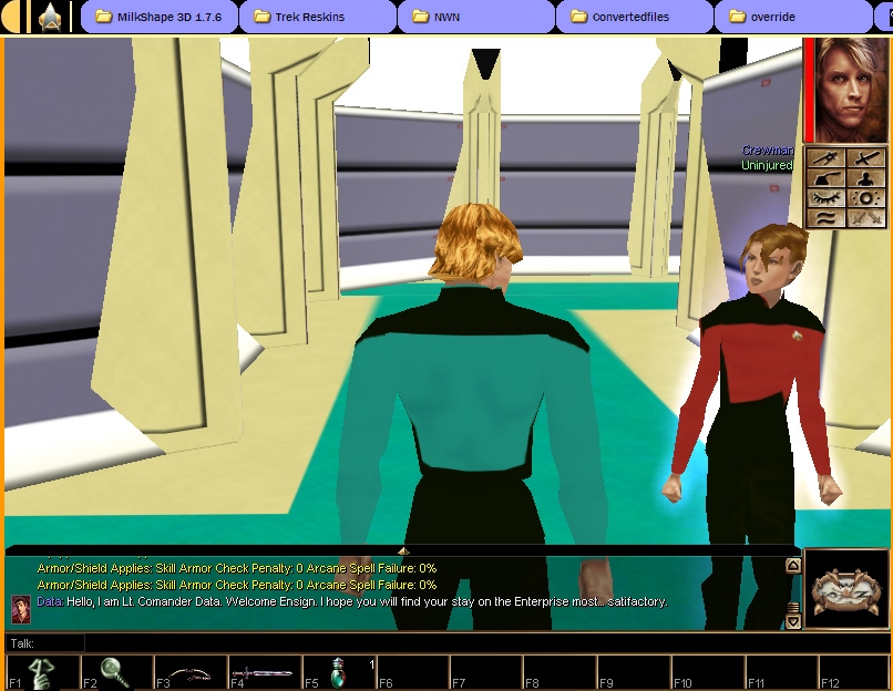 Hey, this is very nice, indeed. Since my first days with the toolset I have been playing with the idea of a StarTrek module... And this retextured tileset is beautiful.