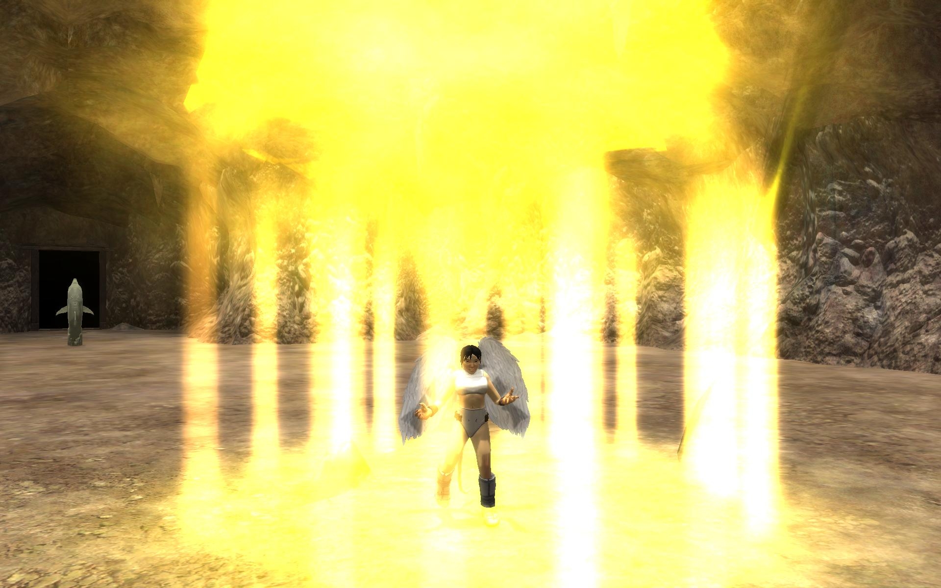 In all forms of existence, Rayna's unassuming appearance belies her amazing (mortal) abilities, such as the manipulation of legendary divine and arcane energies at her will, and physical prowess rivaling that of avatars of lesser deities. As her innate grace and charm was the basis for Ao's creation of all humanoid beauty, countless mortals from the lowest of heroes to the most powerful of gods have been attracted to the allure of Rayna's splendor. At will, Rayna can take to the shadows, and once she even crept by the scrutiny of Mask, the Lord of Shadows and Master of All Theives, without detection.
