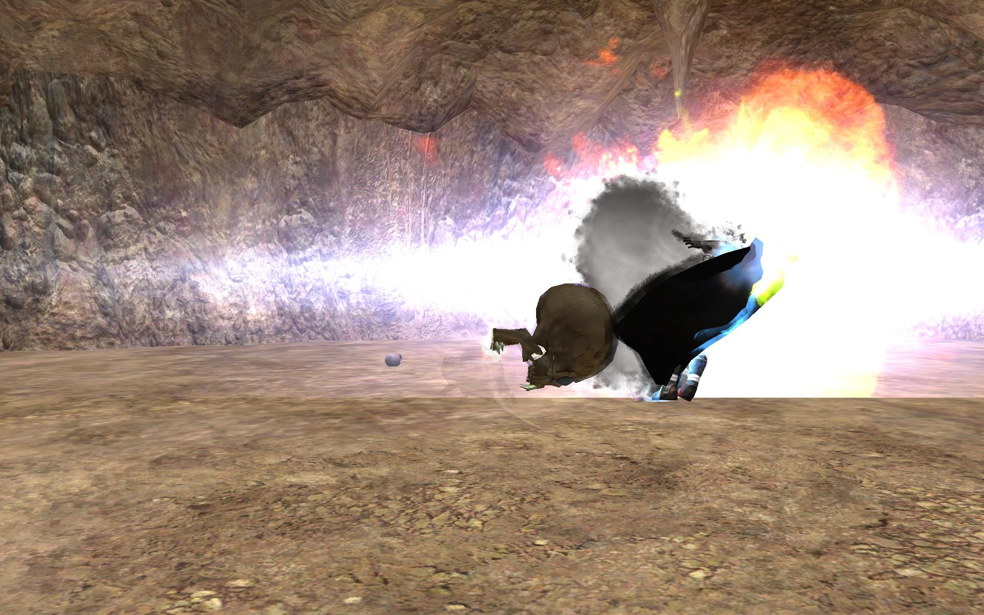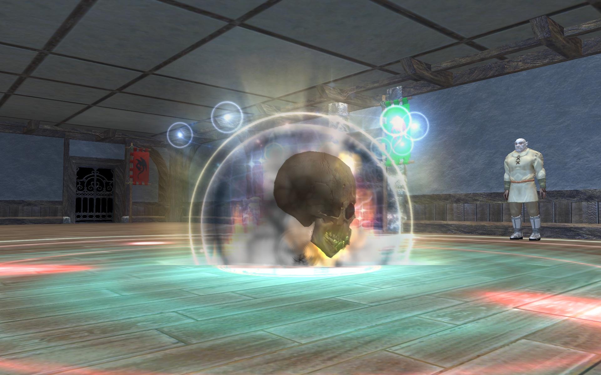 A giant floating skull that's as large as your height, shouting "I shall rend you limb from limb!" and breathing fire from its mouth!