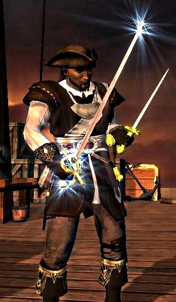 Yo hoo, moussaillon ! Je vous presente Saemon Havarian, le plus célèbre corsaire des Royaumes Oublier ! Depuis son aventure avec l'Enfant de Bhaal, sa réputation a nettement grandis et il ne cesse de naviguer sur les mers...