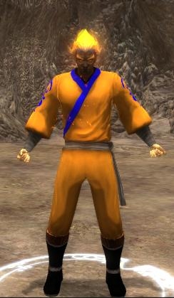 This was meant to be a total joke i have no true likeing of Dragon Ball Z . ok thats a lie i love dragon ballz or loved it until the show made 2 minute long scenes were pepole with glowing hair would scream at eachother for those whole 2 minutes.the graphic novel is still good anyway this is kind of a joke charcter so yeah me and few friends came up with this joke that the fire gensai's hair looked like a super sayians so i laughed and went ahead and made it. this charcter is lvl30 its build is..."Decent" and he looks a lot like Goku. He comes with some items not all he has been given no cloak and is missing a ring.