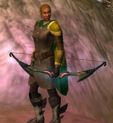 Rachel Willow is a female half-elf Ranger 8/Bard 7/Harper Agent 5. She is probably better suited to satisfying role-playing aspects, rather than being the most optimal build. Regardless, I still favor her (my pretty half-elf-bard-nature girl). :) Focus is on conjuring/summoning, and she is also an archer. I equipped her with a special-made bow. Her animal companion is the wolf. Skills are in concentration, heal, diplomacy, perform, survival, lore, listen, and spot.