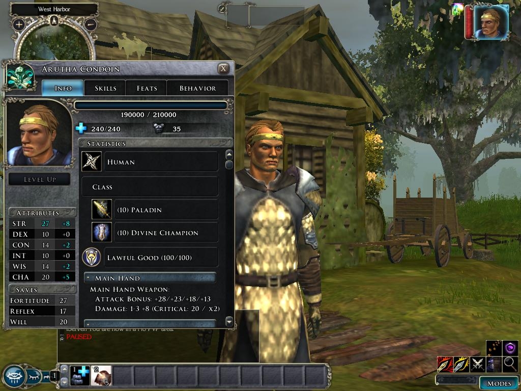 Based upon Raymond E Feists books I created this character He is level 10 paladin and level 10 divine champion