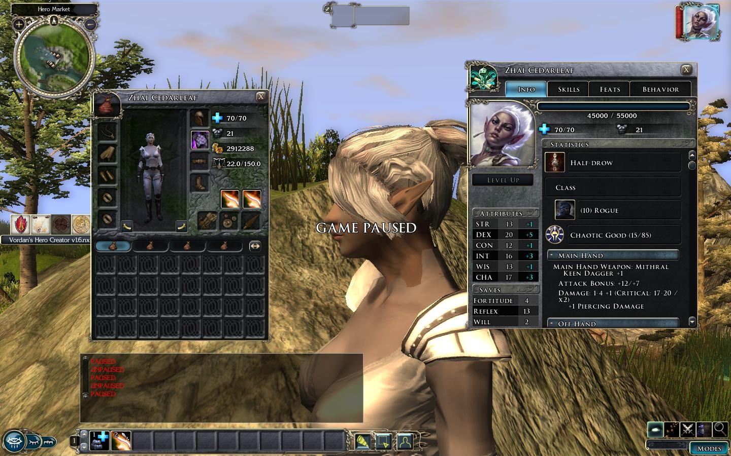 Love the way you've created the characters that I love from the books, except for one little thing. Is Drizzt supposed to be bald? He is when I load him, and I can't figure out how to change his appearance, I'm new to NWN2. Any suggestions?