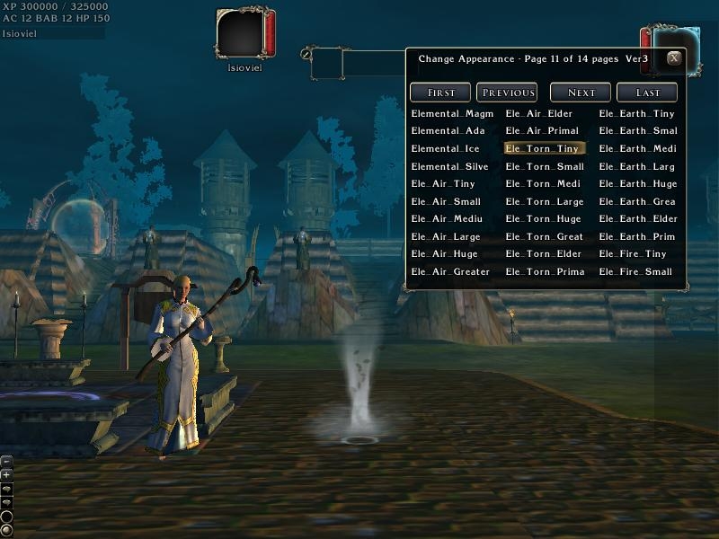 This is a whirlwind creature, alternative appearance for air elementals which comes in 8 sizes. Also shown is some upcoming user interface work on the DMFI Appearance Changer.