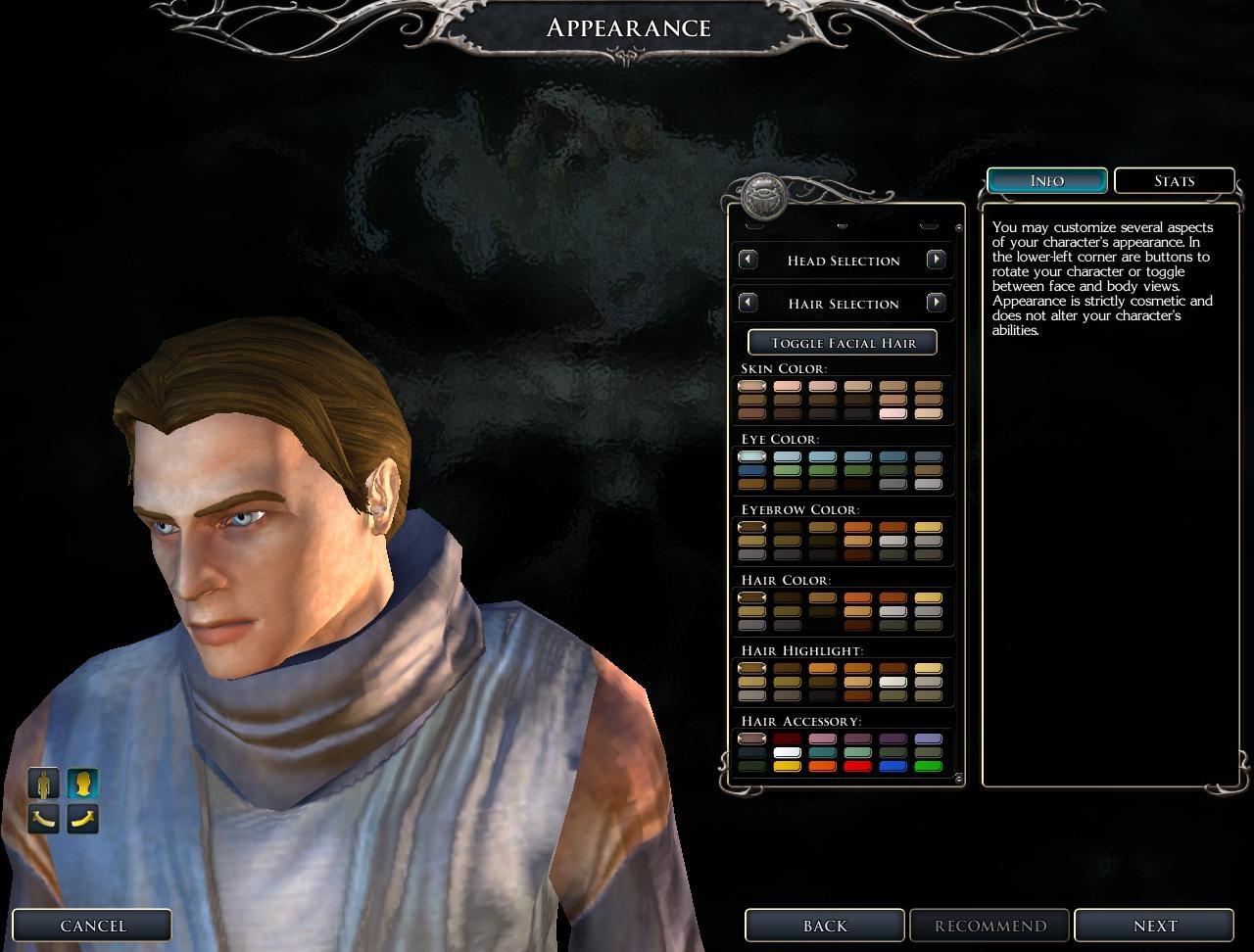 Nice work so far. Been working on something along these lines since I dug out my old copy of the game a few weeks ago. The original heads and hair are terrible after playing newer games. Good luck, this will be a huge project ;) _________________________ NWN1 Head and body pack NWN2 Facelift Pack.