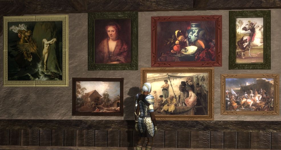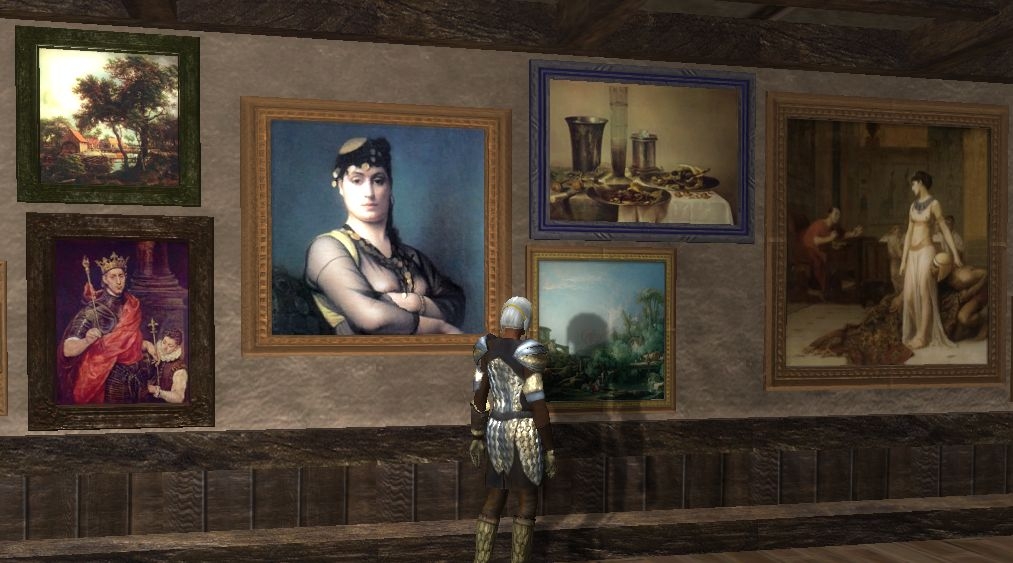 In my mind, a much-needed hak for those who want to give their interiors a more solemn, classy, or regal tone (the standard paintings are nice for what they are, but not very majestic). As someone else pointed out, the standard paintings also feel too contemporary. Thomas_B also made a wise choice in not picking out paintings that are *too* recognizable--i.e., immersion-breaking (Mona Lisa wouldn't fly in the warlock's castle).