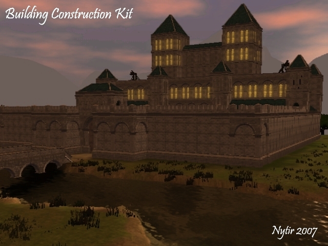 The package contains 218 building parts ranging from floorboards, staircases, walls, columns, beams, doorways, windows to rooftops. The aim of the Building Construction Kit is to provide an easy and flexible way to create large and complex structures in Neverwinter Nights 2. The dimensions of each individual part are all in integers and most of them have the same origin so that you can assemble them easily.