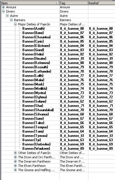 jallaix>> pour le nom français localisé ça doit venir du blueprint que j'ai copié pour faire ceux-ci(la flemme de chipoter à chaque propriété), le nom des dieux en anglais est ajouté entre {} pour chaque bannière. _________________________ Légendes du Luiren : Link