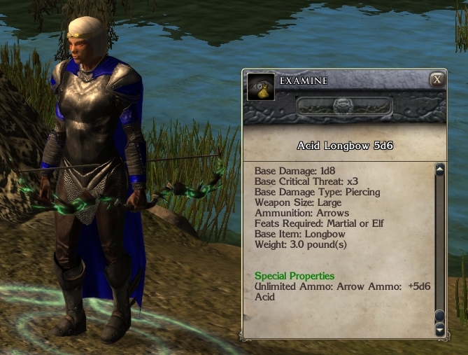 1/23/08 - Alpha v1 - Created new unlimited ammo for longbows and shortbows for acid, fire, cold, and lightning in damage units of 1d6, 2d4, 2d6, 2d8, 3d6, 4d6, and 5d6.
