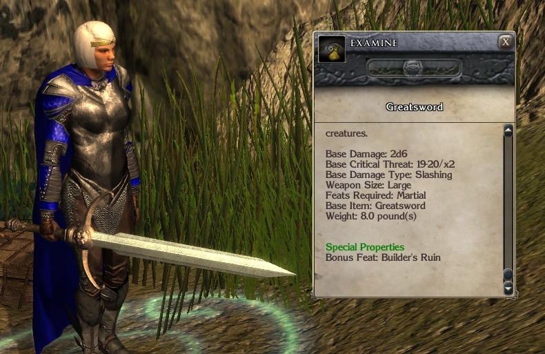 I like playing melee classes in MotB but with the preponderance of creatures that are crit immune the Transcendent Edge falchion is almost the only weapon worth wielding. It is the only weapon worth wielding if you're a Weapon Master. But if you're like me and want a little variation in your armament, then all falchions all the time just isn't fun. Well I've taken care of that. There are now recipes for all the Ruin feats (Death's Ruin, Elemental's Ruin, Nature's Ruin, Spirit's Ruin, and Builder's Ruin). Enjoy. _________________________ Crafted gauntlets and ranged weapon recipes