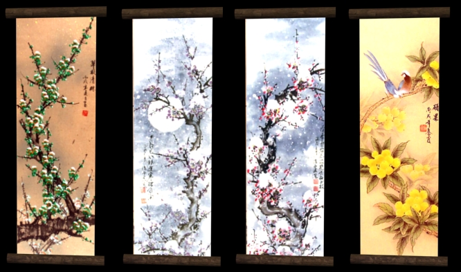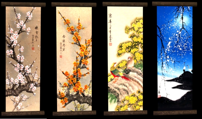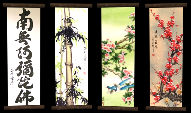 I also included 4 Japanese retextured banners (I plan to make them tintable and create more of them with other japanese clan mons). Thanks to the author of this portable banner cacysunlee. You can find his original model here: