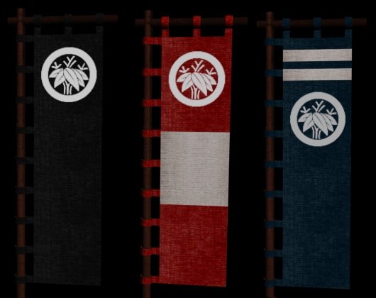 Hemos incluido también 4 Estandartes portables (retexturizados), en un futuro probablemente tintables. La idea es crear varios de ellos con distintos mons de clanes japoneses. Dar las gracias al creador original de este modelo de estandarte portable, cacysunlee. Podeis encontrar su modelo original en: