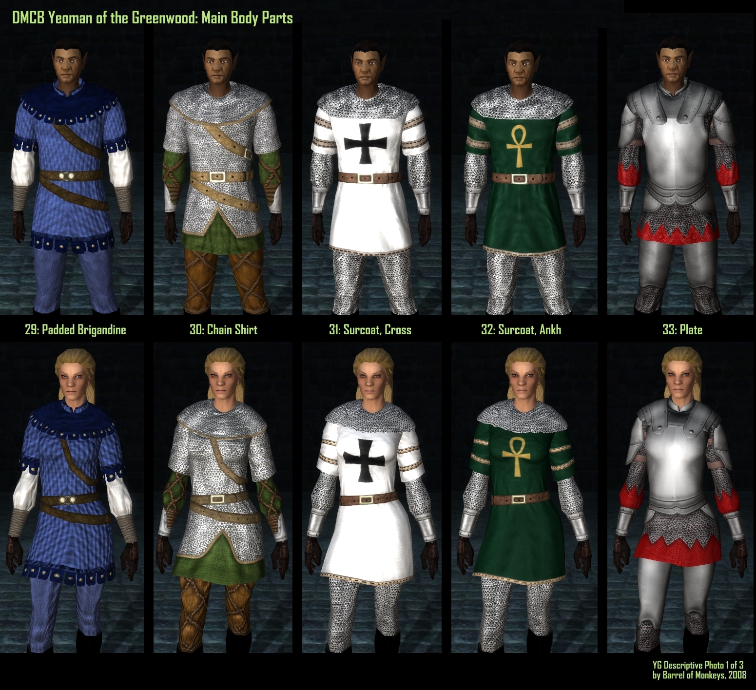 This package provides new armor parts for males and females of all races with styles roughly based around the Robin Hood mythos.