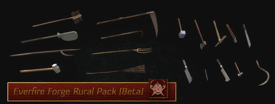 The rural pack contains 25+ models of rural weapons and crafting tools.