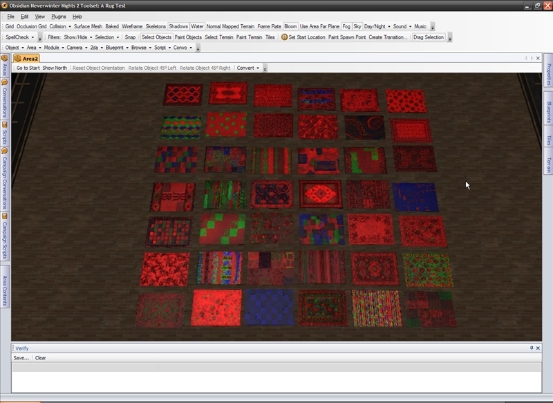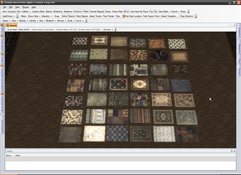 Not all models in that pack were converted as this pack specifically was based off of square rugs only. The models for each of the carpets are just a cloned copy of the PLC_MC_RUG01 placeable already in the tool-set. All the diffuse textures for the carpets are from Twisted Kitty. I created all the normal and tint maps for each one.