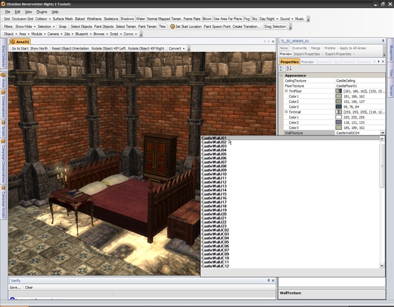 Click on a tile, and then open the properties window. Click on the WallTexture drop down box. Look for the textures named �CastleWallJ01 to CastleWallJ23 (for the grey versions) and �CastleWallJC02 to CastleWallJC23 (for the color versions)� and select one. (See the pictures for an example of where to select this).