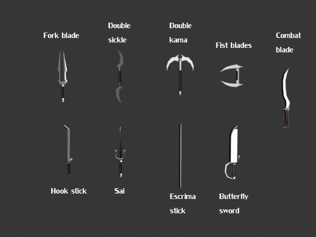 9 new monk weapon (all technically kamas with new models), both real world and more fantasy.