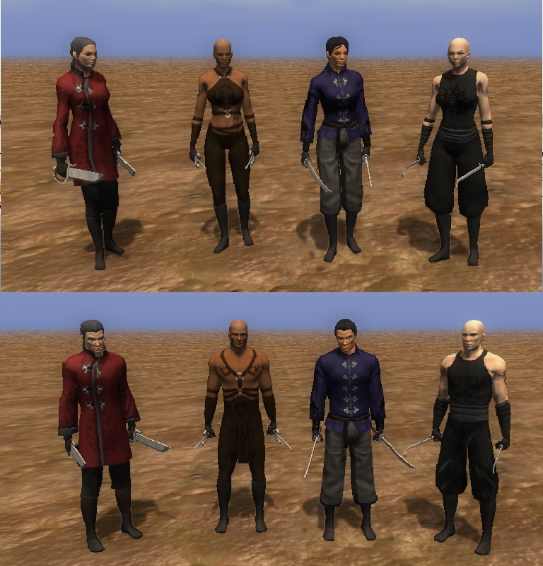 4 new monk (or oriental-fantasy) outfits. Only for male and female humans at the moment, but I'm sure some modder out there will want to fix that...