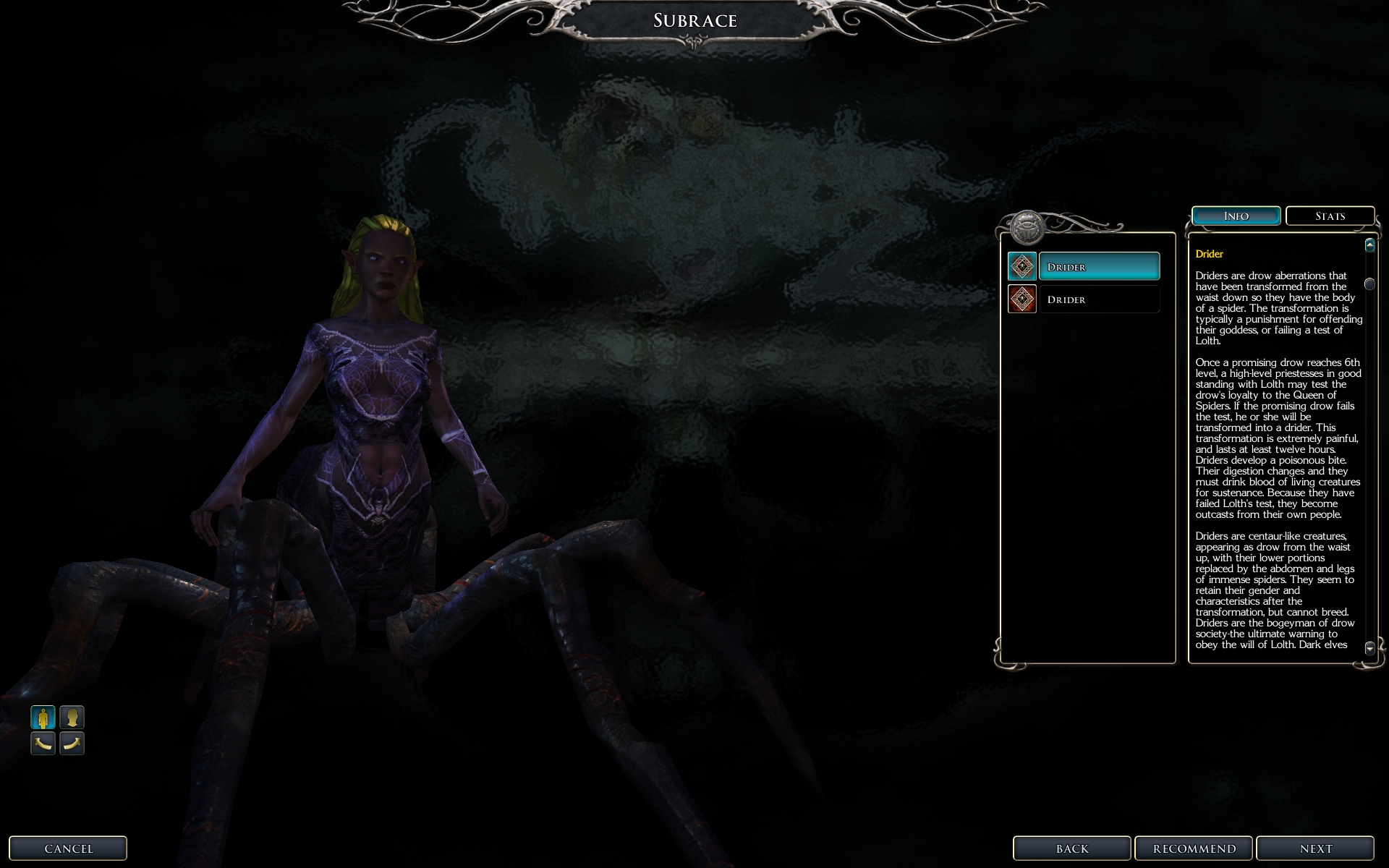 - made the Aberration type avaible with one new subrace (drider female and male),