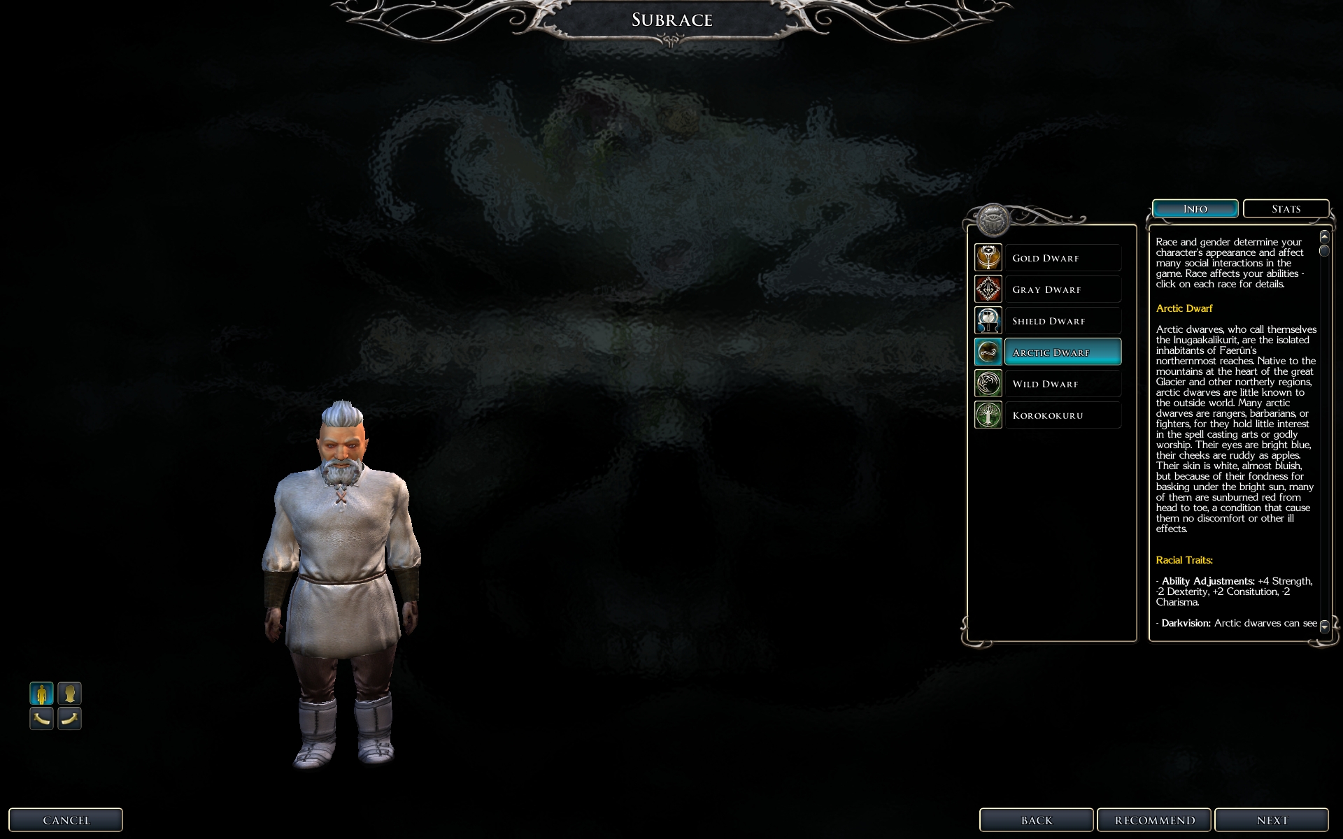 Here I present to you the Races of Faerun Pack v2.3! This project of mine will enable you to play as one of 84 new subraces from all corners of Toril! And as a special treat I've also included all dynamic character models of the Avlis2 Team. So make sure to stop by at their PW and forums and thank Buddha and Clamb/Divaren for making their hard work avaible to us! =]