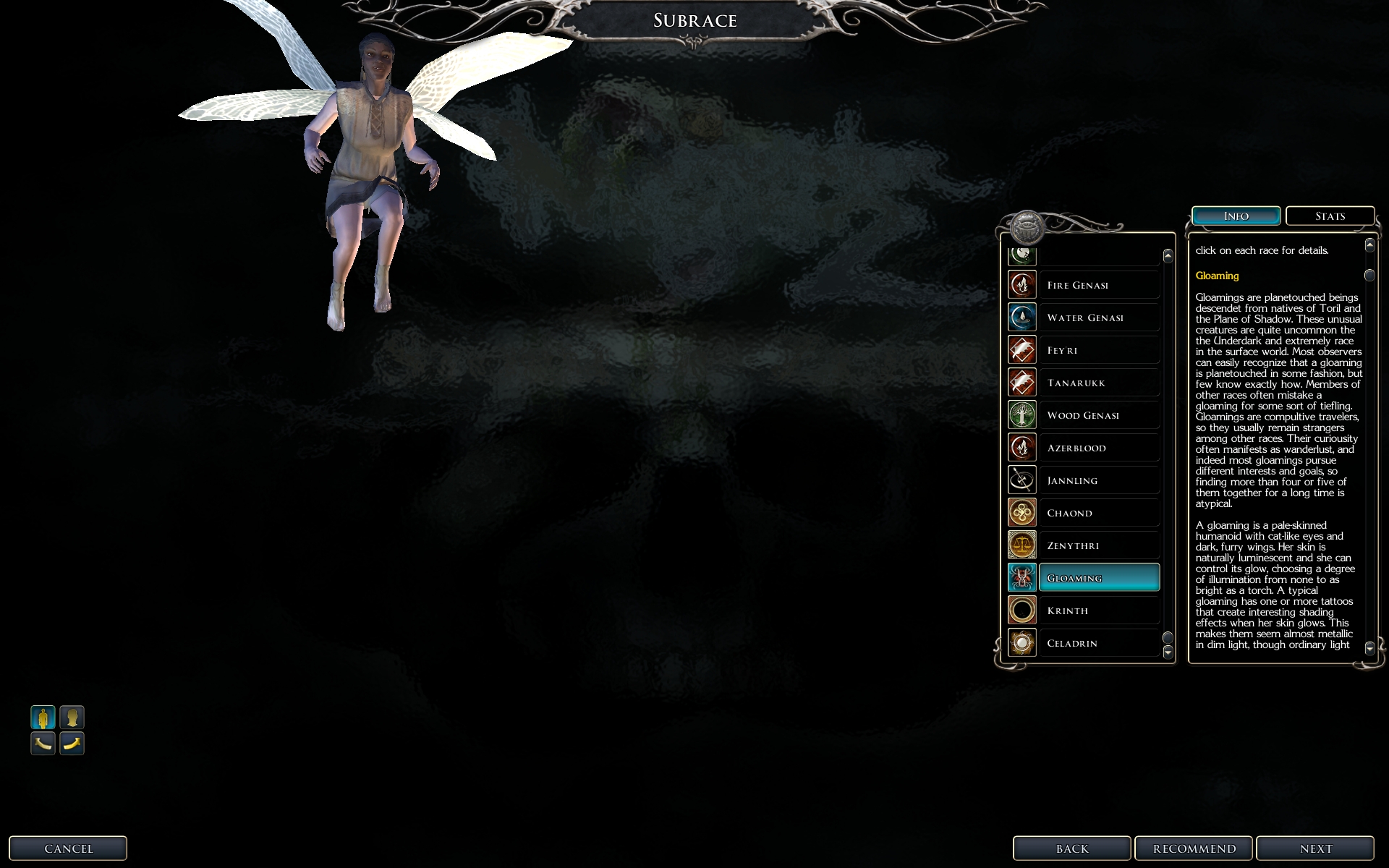 WINGS/TAIL ISSUE: - It is not possible to let player characters have wings/tails at the character creation. For wings and tails showing on player characters one must first edit them with a editing tool (any 2da or tlk editor should do the trick).