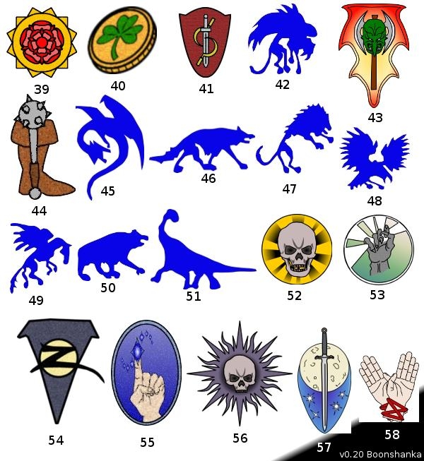 Uthgar beast totem symbols, illustrated by Sam Wood. - Link Symbol of Bane, illustrated by Stephanie Pui-Mun Law. - Link Holy symbol of Azuth, illustrated by Stephanie Pui-Mun Law. - Link Symbol of Cyric, illustrated by Stephanie Pui-Mun Law. - Link